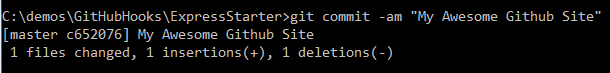 Now that our change is committed locally we are going to push the change up to Github. To do that we simply have to type