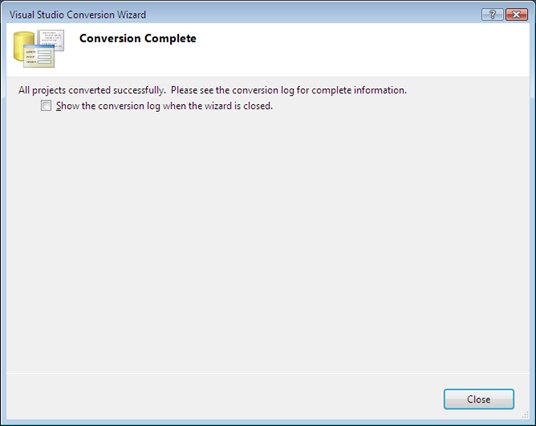 You can choose to open the conversion logs at this time or hit Close… At this point your project should be ready to be used…